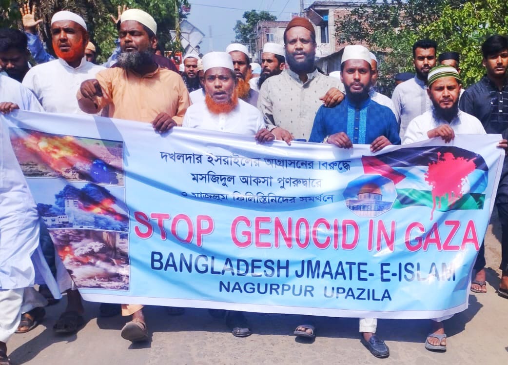 টাঙ্গাইলের নাগরপুরে গাজায় ইসরায়েলি কর্তৃক বর্বরোচিত হামলা ও গণহত্যা বন্ধ এবং স্বাধীন ফিলিস্তিন প্রতিষ্ঠার দাবিতে বাংলাদেশ জামায়াতে ইসলামী উপজেলা শাখার আয়োজনে বিক্ষোভ মিছিল ও সমাবেশ অনুষ্ঠিত হয়েছে।